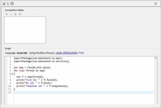 The main thing to be configured on a system activity is the script code which can be coded using any supported server-side language - this defines what the activity does. Process attributes should be used explicitly in system activity scripts so care should be taken to ensure that the process attributes referred to are actually present in the process in which this activity will be used. Completion states may also be defined. These can be set by the script on the $COMPLETION_STATE system variable and may be referred to in subsequent process steps.